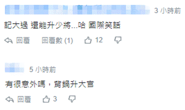 對於陳敏華被記大過,還能升少將,有網友稱“國際笑話”。也有網友表示,“有很意外嗎,背鍋升大官”。