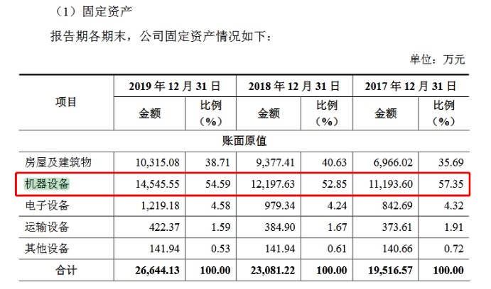 説不清的不止是研發人員的工資,還有公司的產能。招股説明書披露,報告期內,公司機器設備原值由2017年末的1.12億元大幅增加至2019年末的1.45億元,增幅30%。照理説,公司大幅添置機器設備,產品產能也應該相應提高。但蹊蹺的是,2017年至2019年,新亞強主要產品產能卻保持不變。