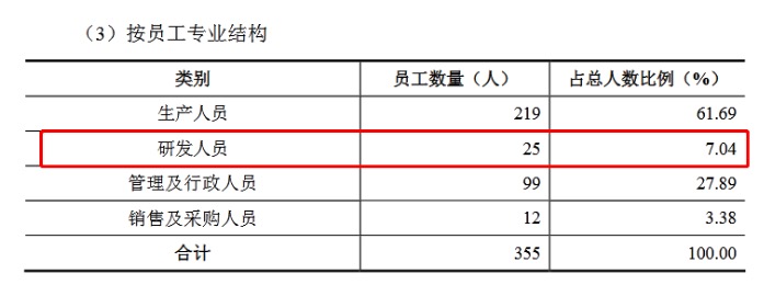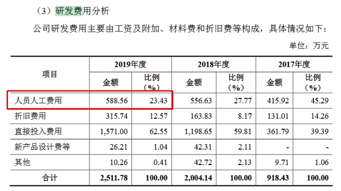 另外,新亞強招股書披露,公司研發人員僅25人,僅佔員工總數7.04%。同時披露,2019年,公司研發費用中人員人工費用588.26萬元,折算研發人員年薪為23.5萬。
