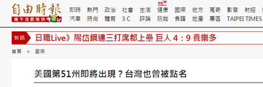 報道稱,美國眾議院當天表決通過讓華盛頓特區成為第51州,系美國曆史上首次,“由於美國強大的經濟實力與影響力,‘成為美國第51州’在國際間成為一種亦真亦假的議題,先前更有民眾在白宮請願網站上發動聯署,盼美國買下台灣。”