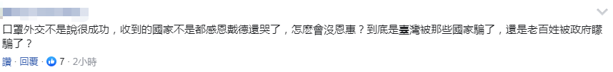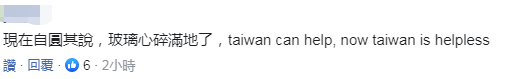 此前,民進黨當局多番誇耀台灣防疫成果,大打“口罩外交”牌,宣揚所謂的“Taiwan can help”,島內亦充斥關於外界稱讚台灣防疫的報道。然而,此次歐盟的首波開放名單中卻並不包括台灣,對此,有島內網民諷刺台外事部門:現在自圓其説,玻璃心碎滿地了。Taiwan can help, now Taiwan is helpless。“口罩外交”不是説很成功嗎?收到的國家不是都感恩戴德嗎?怎麼沒恩惠?到底是台灣被那些國家騙了,還是老百姓被民進黨當局矇騙了?↓