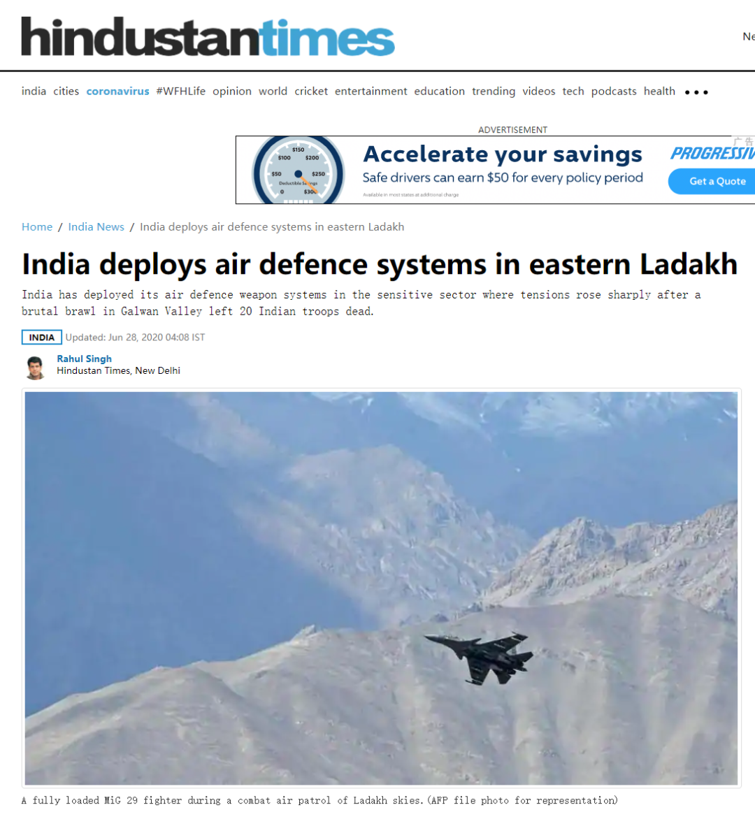 【環球網報道 記者 徐璐明】據《印度斯坦時報》6月28日報道,中印邊防部隊在加勒萬河谷地區發生衝突後,印度已經在拉達克地區東部部署了防空武器系統。