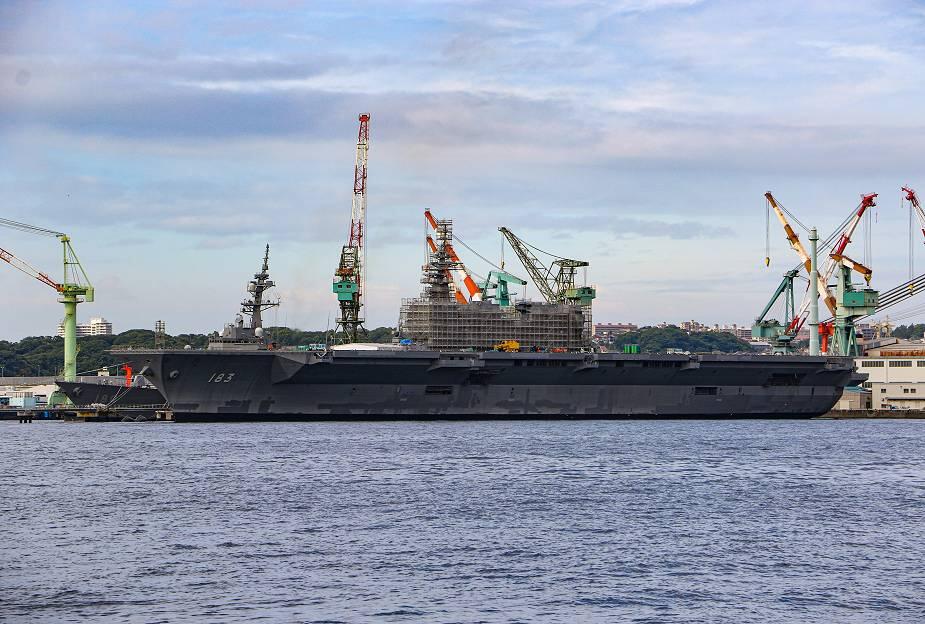 目前,日本海上自衞隊裝備有兩艘“出雲”級直升機航母,分別是DDH-183“出雲”號和DDH-184“加賀”號,它們都將被改裝成真正意義上的航母。據估計,每艘“出雲”級可以搭載12架或者更多的F-35B戰鬥機。