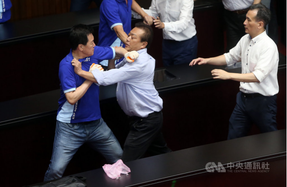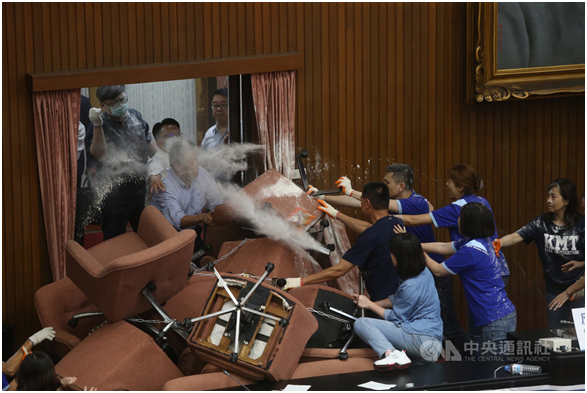 拉扯、潑水、撒麪粉……台“立法院”藍綠混戰,6歲女孩問爸爸:他們是在打架嗎?