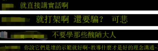 也有很多人説,就直接説實話,説他們在打架,不要學那些醜陋的大人。↓