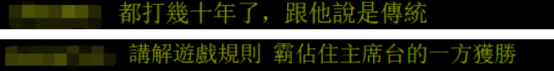 還有人像是在開玩笑:“都打幾十年了,跟她説是傳統”,“解説遊戲規剛,霸佔住主席台的一方獲勝。”↓