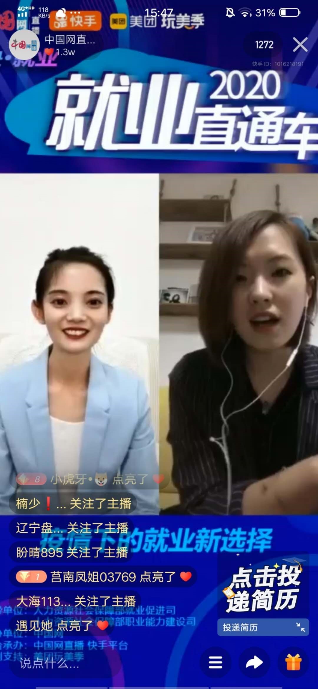 這是7月2日15:00,由人力資源社會保障部就業促進司、職業能力建設司指導,中國網主辦的《快·就業——2020 就業直通車》系列直播活動的首場——疫情下的就業新選擇。也是快手聯合多家媒體、機構在疫情期間進行的社會熱點性主題線上活動,同時也是快手的線上連麥技術在非娛樂性場景中的實際應用。
