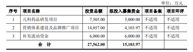 此次葫蘆娃藥業發行股票數量不超過4010萬股,擬募集資金2.08億元,將投資於兒科藥品研發項目、營銷體系建設及品牌推廣項目及補充流動資金。如下圖1: