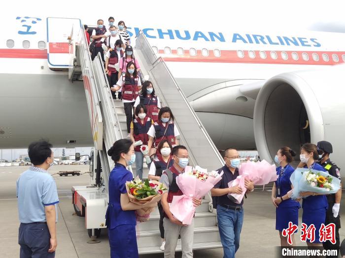 中新網成都7月13日電 (王鵬)四川援北京檢驗檢測隊13日下午平安返回成都。該檢驗檢測隊共計40人,於6月23日抵京,主要來自四川省內17家三級甲等醫院。