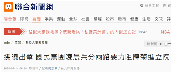 “聯合新聞網”援引知情人士消息稱,上午當陳菊確定進入“立法院”後,國民黨不排除強襲攻堅發言台,對抗強度會更勝於6月29日;若今天讓陳菊完成報告,週五正式同意權投票時,國民黨會發動更高強度抗爭。