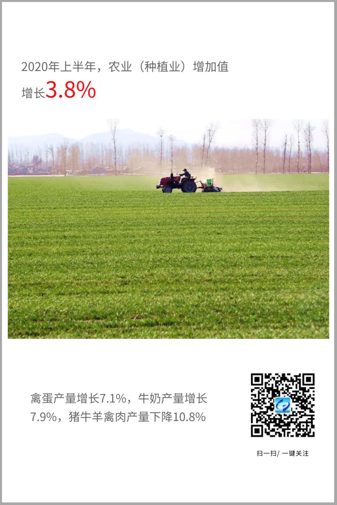 上半年,農業(種植業)增加值同比增長3.8%,增速比一季度加快0.3個百分點;其中,二季度增長3.9%,比一季度加快0.4個百分點。全國夏糧總產量14281萬噸,比上年增加121萬噸,增長0.9%。農業種植結構持續優化,油菜籽等經濟作物播種面積增加。上半年,牛奶產量同比增長7.9%,禽蛋產量增長7.1%。豬牛羊禽肉產量下降10.8%,降幅比一季度收窄8.7個百分點;其中,禽肉產量增長6.8%,增幅提高5.7個百分點;羊肉、牛肉、豬肉產量分別下降2.5%、3.4%、19.1%,降幅分別收窄5.2、3.0、10.0個百分點。生豬產能持續恢復。二季度末,生豬存欄33996萬頭,比一季度末增長5.8%;其中,能繁殖母豬存欄3629萬頭,同比增長5.4%,比一季度末增長7.3%。