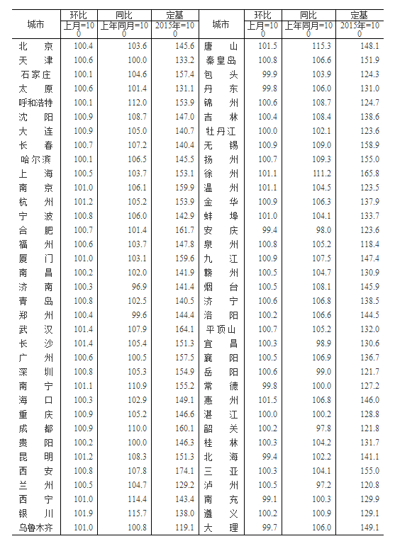 國家統計局:4個一線城市新建商品住宅銷售價格環比上漲0.6%