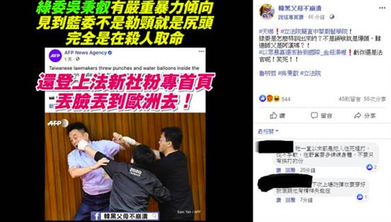 這一次,游錫堃擔心的事情還是發生了:法新社臉書賬號7月17日下午對藍綠這次“混戰”的場面進行了報道。↓