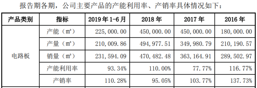 不僅如此,根據招股書第170頁披露的數據,協和電子的電路板產品在2016年和2017年的銷量均大於產量,其中2016年度產銷差為7.93萬平米、2017年為1.32萬平米,這也就意味着在2015年末時,協和電子擁有至少8.25萬平米的電路板產成品存貨。