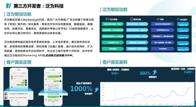 而作為快手重要的第三方合作伙伴,泛為科技打造的營銷SAAS產品"泛為智投"在接入Marketing API後也呈現了效果、效率雙升級:與傳統後台搭建對比,通過API搭建效率提升8倍,素材上傳與管理效率提升10倍,客户服務成效斐然。