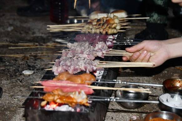 “世界上最痛苦的事不是沒燒烤吃,而是燒烤就在眼前,卻還沒烤熟。”官兵圍在一個個燒烤架邊,將精心醃製的烤料放在燒烤架上,一縷縷炊煙攜着香味飄起,所到之處勾人食慾,“吃貨”們早已按捺不住、垂涎欲滴,燒烤架上的“滋滋”聲合着歡歌笑語聲,幸福和歡笑也在一飽口福中填滿整個假期。
