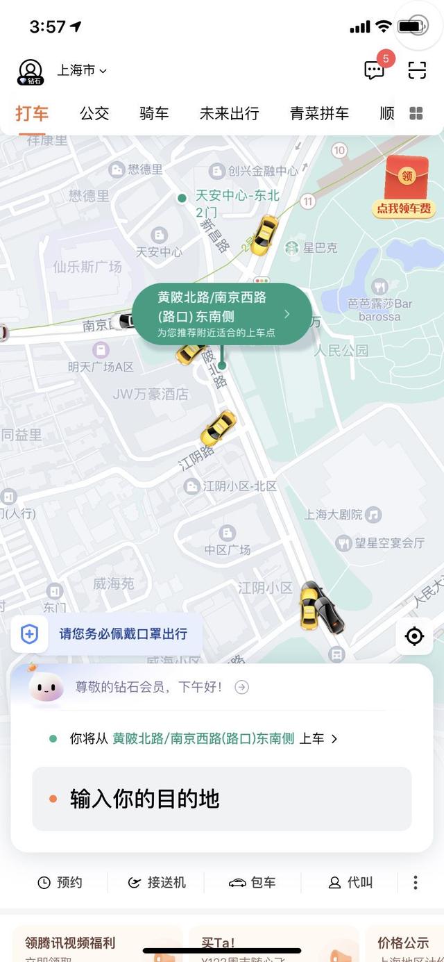 近期宣佈獨立品牌、主打普惠出行和綠色共乘的青菜拼車,與順風車、騎車、公交、代駕、金融服務、車生活、跑腿、貨運等業務並排在頂部導航,方便用户更便捷地使用相關服務。此外,上海用户可在滴滴APP頂部導航選擇"未來出行"報名體驗自動駕駛。