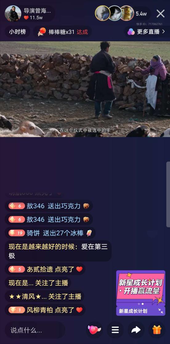 綿延不絕的雪山、豐饒的大地階梯、輪迴往復的流水……7月24日,由北京五星傳奇文化傳媒有限公司拍攝製作,全面反映青藏高原人與自然和諧相處的紀錄片《第三極》90分鐘典藏版在快手獨家直播。導演曾海若和製片人胡小鹿也做客直播間,分享了紀錄片背後的故事。這場持續兩小時的直播,共吸引了645.5萬人觀看,最高同時在線人數超過5萬人。
