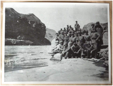 1938年9月,“演劇三隊“離開武漢,途徑西安,輾轉前往山西的第二戰區,1938年的冬天,光未然率領”演劇三隊“來到山陝交界處黃河岸邊的古渡口圪針灘,演劇隊準備從這裏東渡黃河,黃河對岸正是抗日烽火燃燒的第二戰區。”演劇三隊“隊員,後來擔任《黃河大合唱》首演時指揮的鄔析零,日後撰文,記錄了當年這次東渡黃河的驚險場面:”40 來個打着赤膊,膚色棕黃髮亮的青壯年,撲通撲通跳進水裏,把渡船推向河水深處,船頭高處立着一位60來歲的白鬍子老人,十來分鐘後,渡船已行近大河中央的危險地帶,浪花洶湧地撲進船來,那位白鬍子老人直起了脖子,喊出一陣悠長而高亢!嘹亮得像警報似的聲音……”