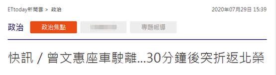 曾文惠座駕折返榮總。(圖源:台灣“東森新聞網”)