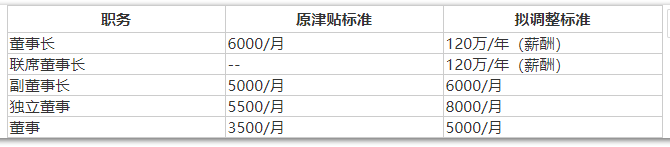 具體來看,欣龍控股董事長的收入擬由原津貼標準6000元/月調整為120萬元/年的薪酬水平,聯席董事長(今年新設立的職位)收入擬定為120萬元/年,副董事長收入擬由原津貼標準5000元/月調整為6000元/月,獨立董事收入擬由原津貼標準5500/月調整為8000元/月,董事擬由原津貼標準3500元/月調整為5000元/月。