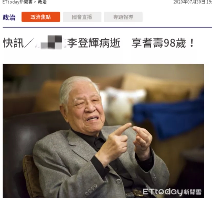 【環球網綜合報道】台灣“東森新聞雲”剛剛消息,台北榮民總醫院今(30)日證實,台灣當局前領導人李登輝已在晚間19點24分病亡,終年98歲。