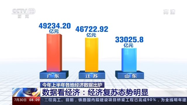 就經濟總量而言,儘管突如其來的新冠疫情讓各地經濟增長在上半年承受了不小的壓力,但傳統經濟大省繼續領跑。廣東省以49234.20億元居於首位,江蘇省緊隨其後,為46722.92億元,山東省則是33025.8億元,居第三位。據統計,有6個省份的地區生產總值在上半年超過兩萬億元,19個省份超過一萬億元。