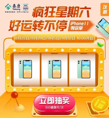 為回饋客户,倡導健康生活方式,本次客户體驗節還準備蘋果手機、華為手機、蘋果手錶、小米平衡車、歐姆龍血壓儀等五萬份精美好禮,參加活動可免費領取價值139元的新人健康禮包。用户在活動中收集的健康幣,既可以用於抽獎,直接兑換禮品,還可以公益捐贈,通過泰康溢彩公益基金會為貧困地區養老院奉獻愛心。