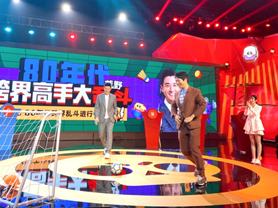 在80年代的足球主題環節,現場直播還特別連線了知名體育解説員韓喬生。韓喬生對郎朗和蔡贇現場展開的一場趣味射門比賽進行了解説,作為有多年解説經驗的專業解説員,韓喬生即興解説、風趣幽默,令沉浸在射門遊戲中的郎朗和蔡贇笑聲不斷。