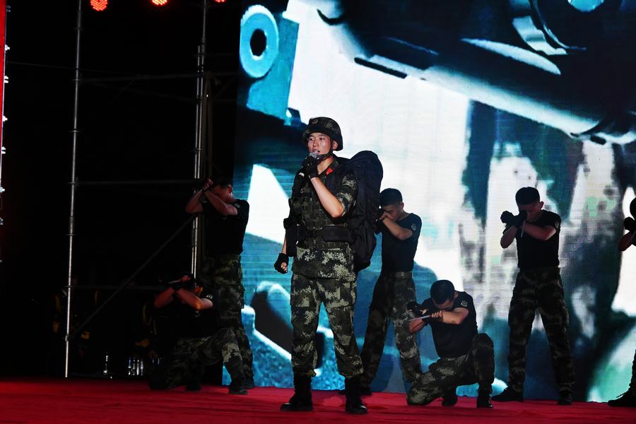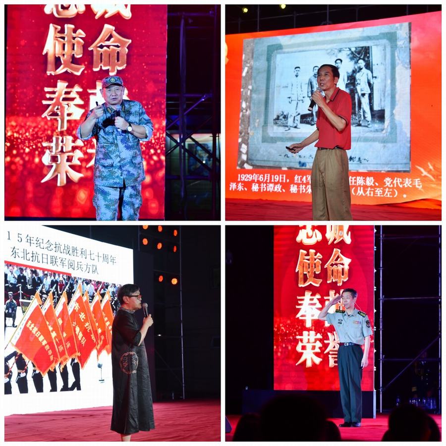 舞台華美,燈光璀璨。開篇宣講東北抗日聯軍創始人李兆麟將軍之女張卓亞女士的《讓信仰點亮人生》、共和國第一任核司令張藴鈺將軍之子張旅天大校的《有一個地方叫馬蘭》、夏川之子裝甲兵工程學院盧繼兵教授的《犧牲奉獻精神是軍人的天職》以及開國上將朱良才之子朱新春大校的《榮譽屬於黨》為我們講述了鮮為人知的革命家庭故事、優良家風的延續以及紅色基因的傳承,激發了廣大官兵堅定理想信念,傳承愛國主義精神的信心和決心;青年男高音歌唱演員田寶老師演唱的歌曲《忠誠》、中國內地女歌手賀娜老師演唱的《山丹丹開花紅豔豔》表達了對黨的無限忠誠和真摯情感,謳歌了新時代革命軍人不忘初心、奮發有為的革命精神;基層官兵自編自演的歌伴舞《血性軍人鋼鐵漢》生動詮釋了武警官兵精武強,忠誠使命的火熱情懷;舞蹈《傳承》、情景劇《老兵》、快板《惜榮譽、續奮鬥、爭先之年創一流》……一曲曲優美動聽的曲調、一首首扣人心絃的旋律、一段段動感十足的舞姿,讓觀眾聽的入神、看的入境、樂的入心,將活動推向了一個又一個高潮。最後,整場晚會在大合唱《人民軍隊忠於黨》《中國軍魂》的高亢歌聲中圓滿落下帷幕。