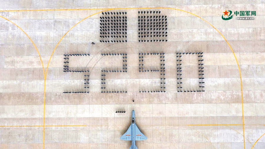 停飛儀式上,空軍航空兵某旅官兵擺出“5290”的數字圖案,向空軍殲擊機安全飛行時長紀錄保持者王文常致敬。皇 勇攝