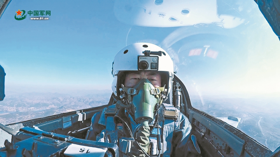 同一天,36歲的飛行員薛軍田也起飛了。他駕駛最先進的國產戰機巡航藍天,面對現代化的數字顯示屏,開始了新一輪的戰鬥訓練。