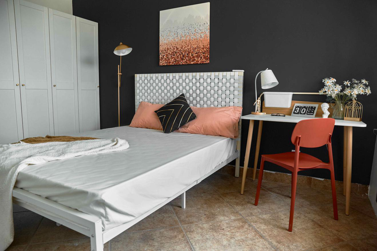 卧室作為租客們的私密空間,在此次5.0系列產品中,內含着不少實用的設計,比如衣櫃增加的外部掛衣功能,巧妙的運用了衣櫃的頂部空間,為租客們減輕不少掛衣、晾衣的煩惱;書桌上方增加的擋板和掛架,可以有效防止物品掉落,並滿足用户對於書桌儲物的需求。房間內還特別精選了在遮光方面,也遠勝其他顏色的灰色窗簾,只為給每一個奮鬥的年輕人更安心的睡眠。除此,很多傢俱的五金上也選擇了拉絲金屬,整體來看,特別適合追求高品質租住生活的都市白領。