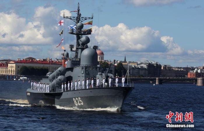 當地時間7月26日,俄羅斯多地舉行閲兵,慶祝海軍節。俄羅斯海軍司令部所在地聖彼得堡是此次海軍節閲兵活動主場。46艘艦艇和41架直升機和固定翼飛機參加了活動。圖為聖彼得堡閲兵活動現場。中新社記者 王修君 攝