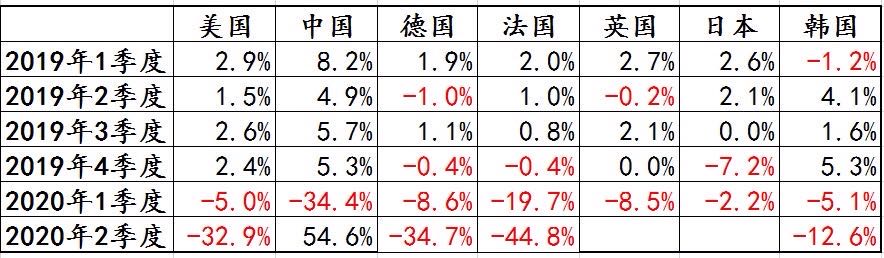 部分經濟體GDP季環比折年率變化情況 數據來源:Wind