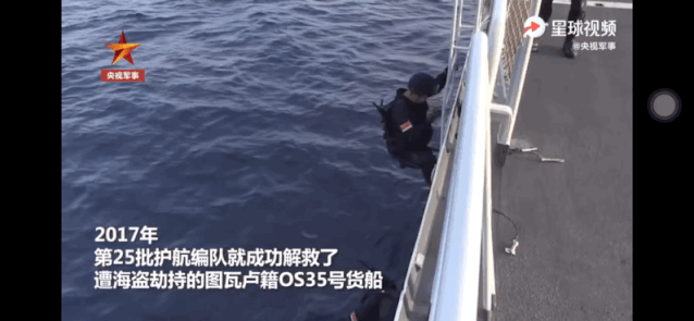 2017年4月9日,第25批護航編隊營救一艘遭劫持的圖瓦盧籍貨船,16名特戰隊員在掩護下登上貨船,將全數船員解救出安全艙,並抓獲了3名海盜。