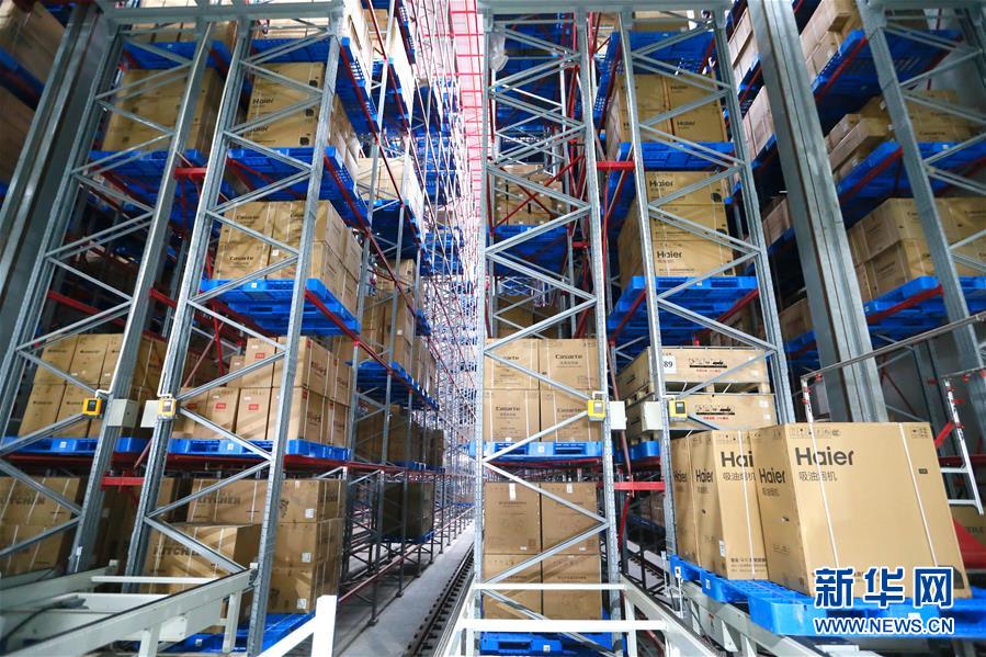 8月5日,在日日順物流(即墨)產業園的大件物流智能無人倉,商品通過流水線進入立體存儲倉庫。 在位於山東省青島市即墨通濟新經濟區,由日日順物流打造的首個大件物流智能無人倉今年夏季投入運行。該無人倉應用全景智能掃描站、關節機器人、吸盤龍門揀選機器人等多項定製智能設備,採用5G和視覺識別、智能控制算法等人工智能技術,可實現冰箱、空調等大件商品24小時不間斷分揀作業。 新華社發(梁孝鵬 攝)