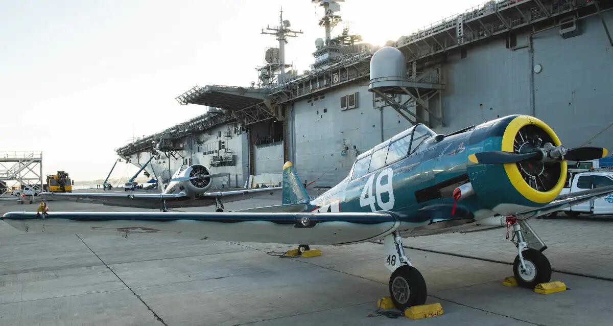 畫風奇特!美軍準航母搭載一堆二戰“古董”戰機出海
