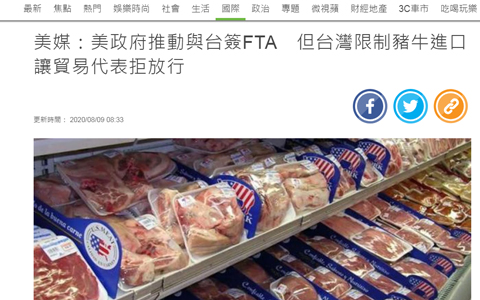 據媒體報道,美國為了捍衞貿易利益,不排除利用民進黨當局擺脱所謂“國際孤立”狀態的心理,先擒後縱,要求台灣開放進口美國含瘦肉精的豬、牛產品,作為簽訂自貿協定的前提條件。