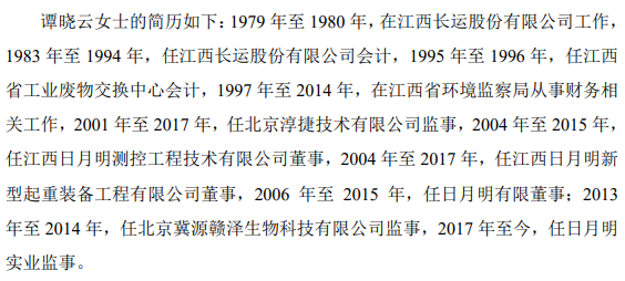 首先值得關注的是,根據日月明在2017年9月發佈的《權益變動報告書》披露,實際控制人之一、陶捷的妻子譚曉雲女士“1997年1月至2014年12月任江西省環境監察局會計”且“現未在公司任職”。