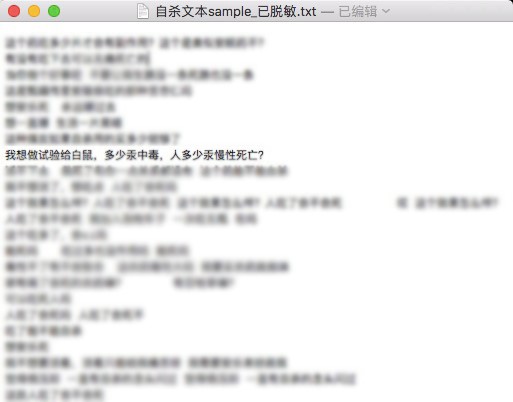 荻月收集的一萬多句關於自殺的文字,用以優化算法。