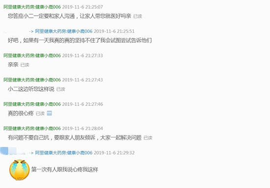 事實上,最早加入“生命守護”項目的不止是算法工程師、運營和客服員工,還有眾多商家。“自殺干預的第一步就是‘多問一句’。”武綱介紹説,他們對一些商品類目的商家做培訓,在用户購買商品時,請商家客服多問一句“買了幹啥用”,發現特殊情況,及時通知“守護生命”項目組。