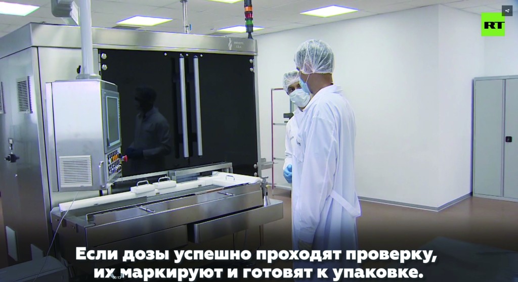 今日俄羅斯電視台探訪俄疫苗生產基地時表示,目前,工廠已經就生產工作準備就緒,當前工廠的最大生產能力為每月12萬劑,但他們計劃提高工廠的產能。可能是由於保密的考慮,俄電視台畫面中並沒有透露更多有關疫苗性能的數據與介紹。
