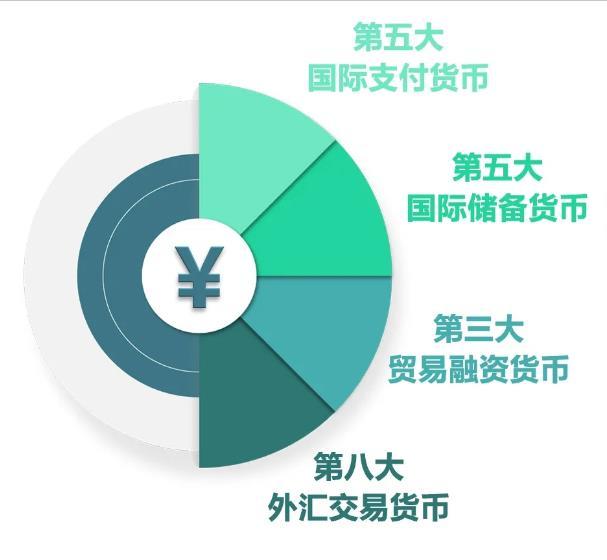 第五大國際支付貨幣、第五大國際儲備貨幣、第三大貿易融資貨幣、第八大外匯交易貨幣……這説的就是人民幣!