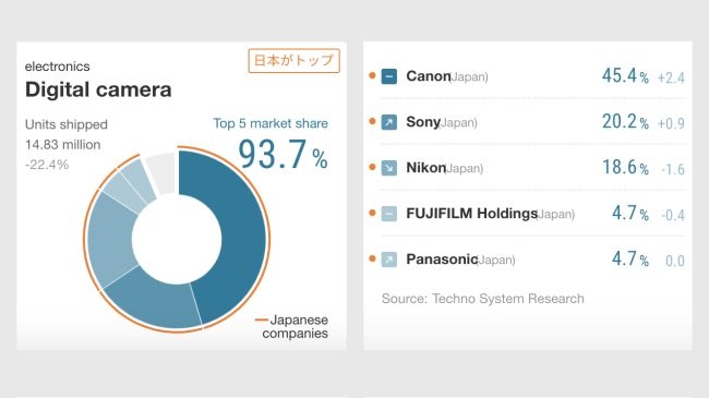 2019年全球相機市場份額公佈:佳能、索尼、尼康前三
