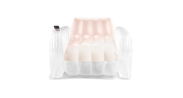 從側面來看,你會發現右邊扶手上有個小斜坡,能夠完美地放置最新款的 Moto Razr 摺疊屏智能機。再仔細檢查的話,你會在這款充氣椅上找到雙方的品牌聯名印記。