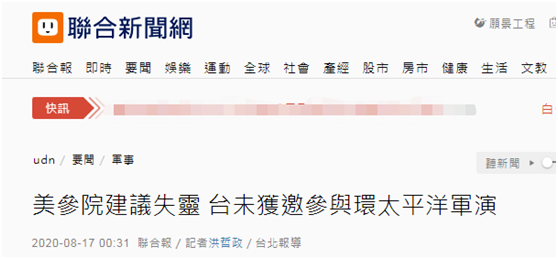 今年5月,台防務部門負責人嚴德發就曾在台“立法院”答詢時表明,爭取參與今年8月登場的環太平洋軍演。當地時間7月23日,美國聯邦參議院軍事委員會公佈審查通過的“2021財政年度國防授權法草案”,國會意見建議邀請台灣參與環太平洋軍演。