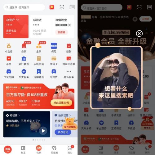 此外,相較於原先界面,新版京東金融對整體UI和視覺效果進行了優化升級,採用明麗跳脱的配色和簡約大氣的設計。基於大數據算法,京東金融會根據用户行為習慣、產品喜好和風險等級等因素,智能化定製每個用户的首頁界面和內容推送,提升決策效率。