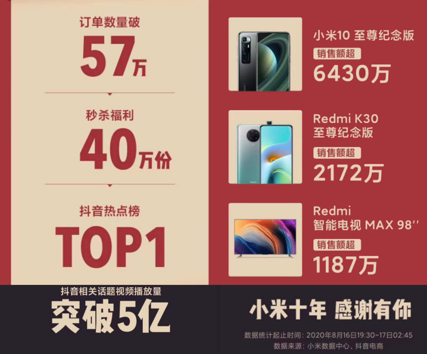 雷軍抖音直播首秀創記錄,小米十週年慶典完美收官