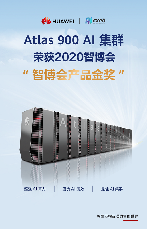 *【環球網科技報道 記者 鄭湘琪】*近日,2020全球人工智能產品應用博覽會(下簡稱智博會)在蘇州舉行。大會開設了AI相關重磅獎項,其中華為Atlas 900 AI集羣憑藉其業內領先的AI算力、散熱系統及超高速集羣網絡等特性,獲得“智博會產品金獎”。